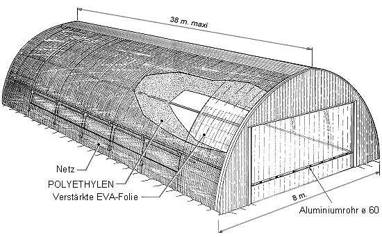 Dank dieser komplett abdeckbaren Struktur können Kulturen, durch ein Netz geschützt, auch an der frischen Luft gedeihen.