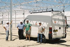 20 betriebseigene Mitarbeiter in eigenständigen, über ganz Frankreich verteilten Teams, sowie eine im Export einzatzfähige Gruppe, übernehmen die Montage der Gewächshäuser und deren Ausrüstung.